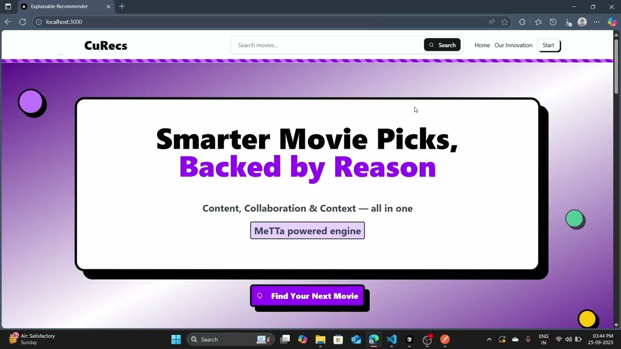 Advanced AI-powered recommendation system using MeTTA (Meta-Learning for Transfer and Task Adaptation) framework. Built frontend interfaces for complex AI model interactions and data visualization.